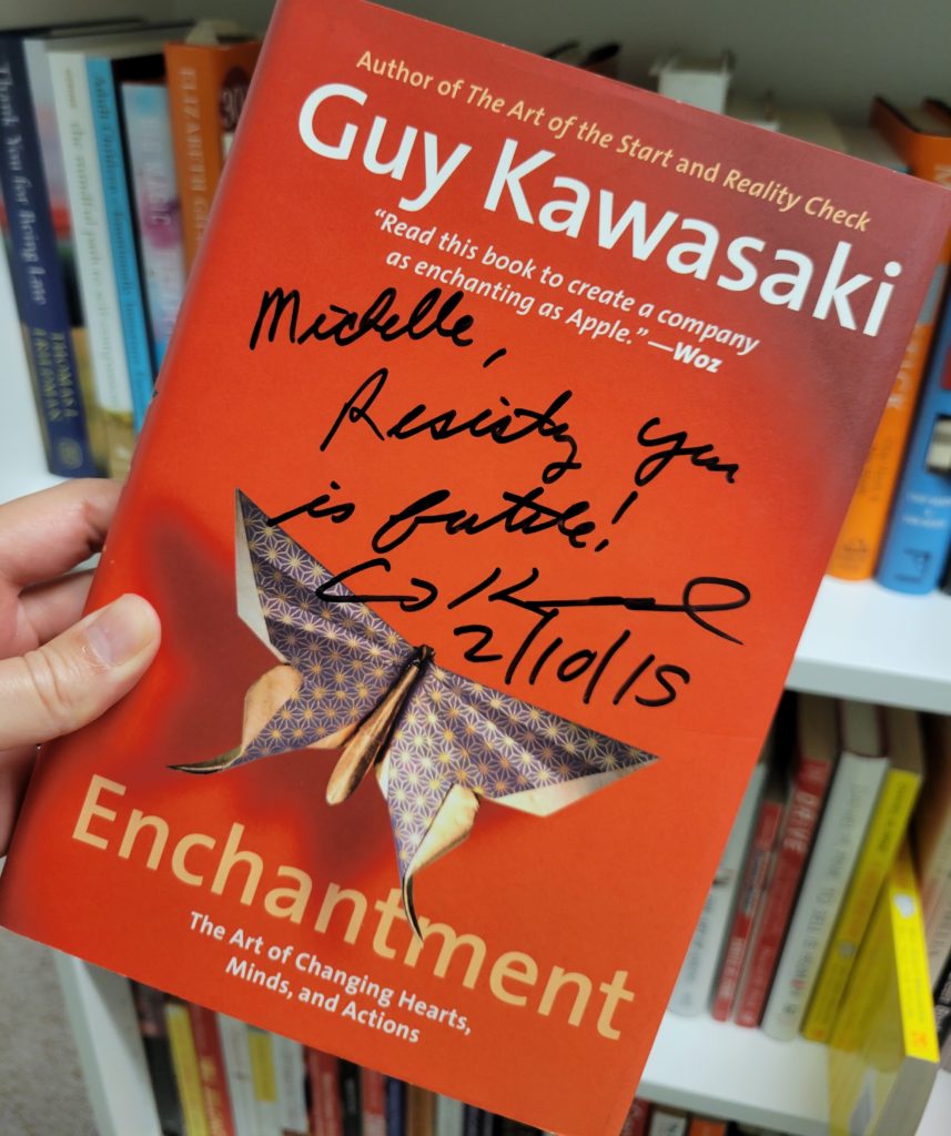 Dan Pink and Guy Kawasaki were also keynote speakers at PETE&C. I don’t have a funny story about Dan Pink, because I didn’t have a lot of time to interact with him. Guy Kawasaki was Apple’s Chief Evangelist, and I was trying to hide all my Windows devices from him during the smaller breakout discussion after his keynote. I remember joking with him about the Borg and Star Trek, which led to what he wrote on the cover of his book.